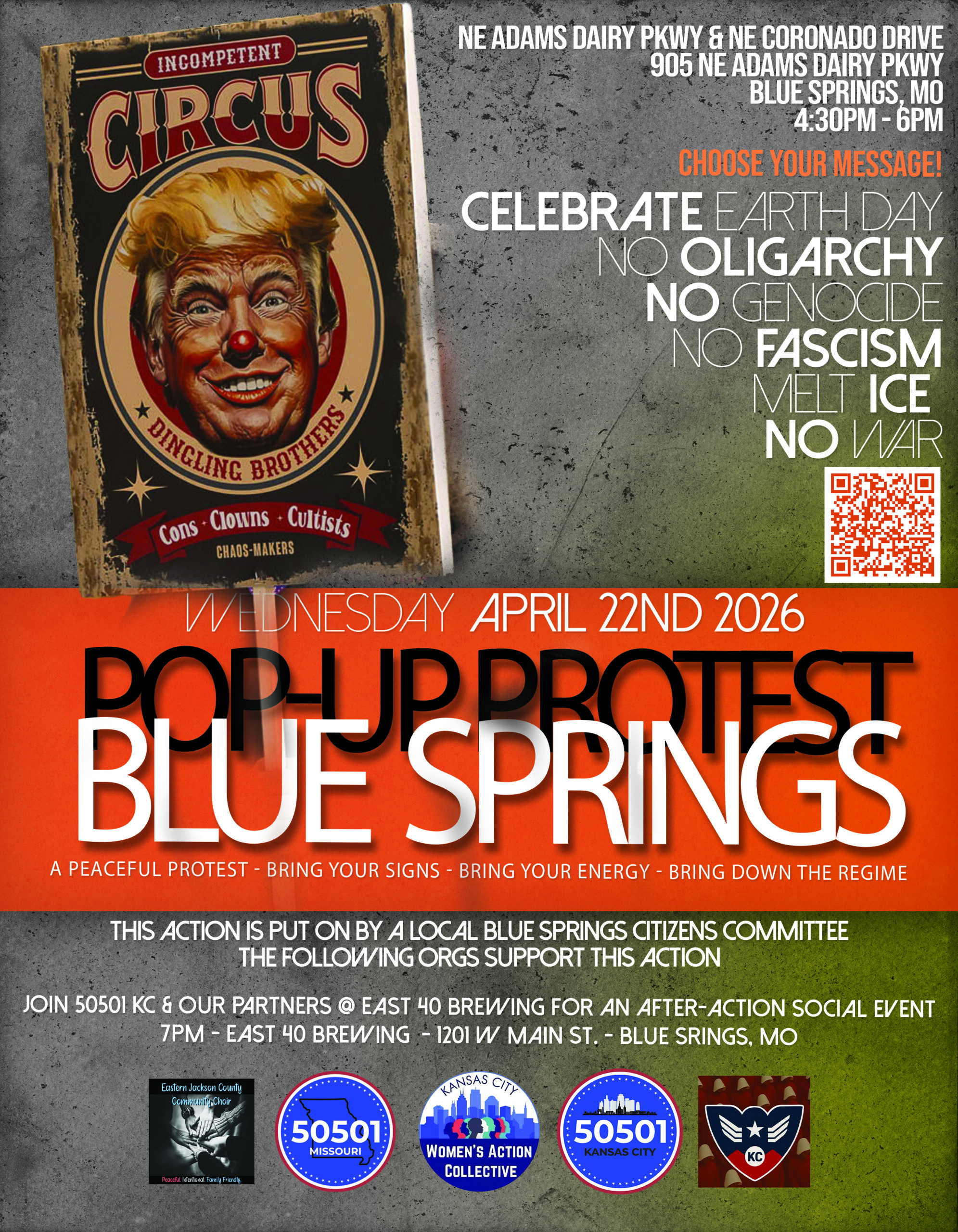 The Blue Springs Citizens Committee is once again hosting a peaceful protest in Blue Springs, supported by 50501 KC, 50501 Missouri, and KC WAC. Bring your signs, bring your energy, and bring down the fascist regime!
